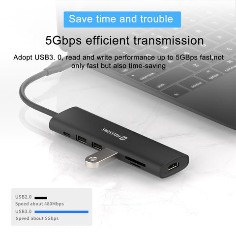 SWISSTEN USB-C HUB 7-IN-1 (USB-C 100W, HDMI 4K, 1x USB-A 3.0, 2x USB-A 2.0, SD, MICRO SD) ALUMINIUM